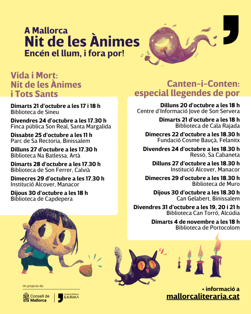 La campaña, organizada por la Fundació Mallorca Literària, llegará a más de 2.500 personas entre el 20 de octubre y el 4 de noviembre con talleres, cuentacuentos y propuestas educativas en torno a Tots Sants.