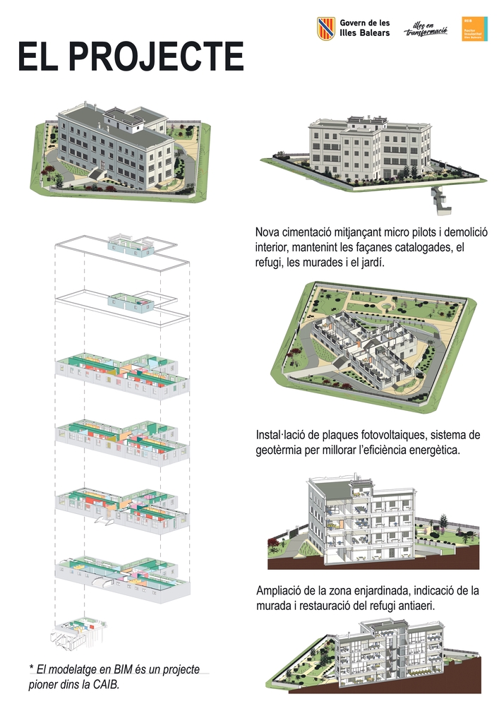 El edificio, construido en los años 30 del siglo XX como sede del antiguo Instituto Provincial de Higiene, está catalogado con grado de protección B (Bien de Interés Local) por el Ayuntamiento de Palma. La intervención incluye la restauración del refugio antiaéreo de la Guerra Civil, situado en su subsuelo.