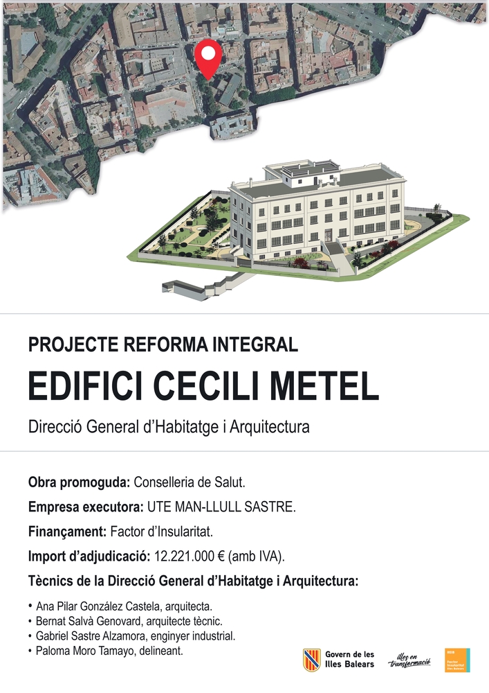 Palma, 21 de octubre de 2025. El Govern de las Illes Balears ha presentado el proyecto de rehabilitación integral del edificio histórico de la calle Cecilio Metelo, 18, en el centro de Palma. Las obras, que comenzarán entre finales de octubre y principios de noviembre, permitirán recuperar este inmueble catalogado como futura sede de varios departamentos de la Conselleria de Salud.