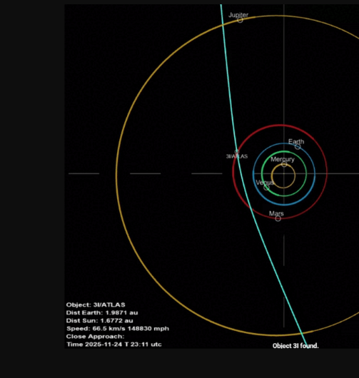 El desembre de 2025 que ATLES s’acostà a la Terra, pot ser de manera programada, les dades internes de NORAD i ESA van confirmar el que s’havia mantingut amagat durant dies: el planetoide no passaria de llarg. La seva trajectòria es corbava de manera matemàtica, exacta, equilibrada, i inevitable.